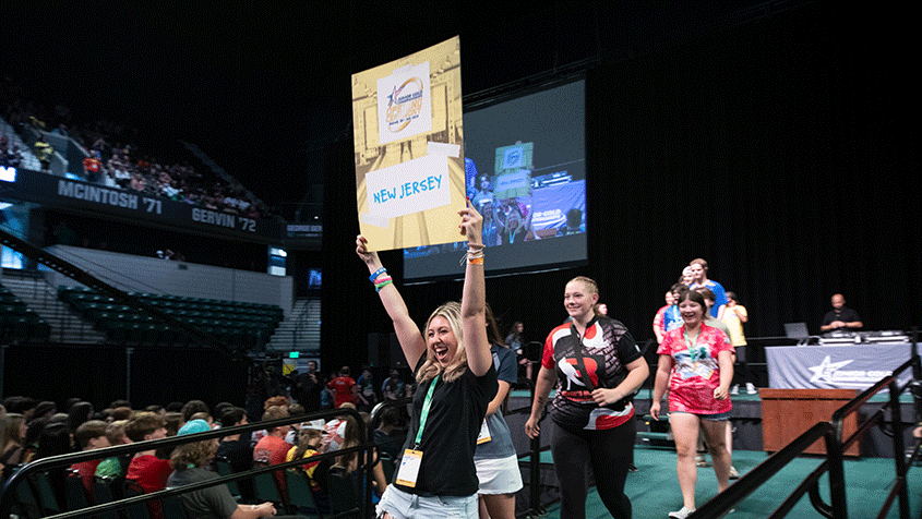 “I’ve sang the national anthem locally for the Fourth of July and at cross country events where I’ve competed, but this is awesome and it was a great opportunity,” said Knecht, who is bowling in Junior Gold for the third time. “I thought the athlete walk was pretty cool with everybody holding up signs and representing their state. It’s a great way to kick things off.”