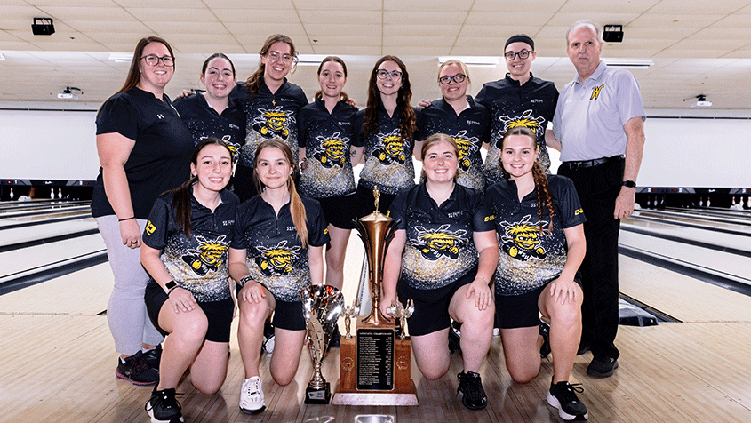 Thirty-two men’s varsity teams and 27 women’s varsity teams came into Wichita looking for a win, but they first had to bowl six individual games and 16 Baker games to qualify for match play. The top eight after qualifying moved on to match play for the best-of-five bracket.